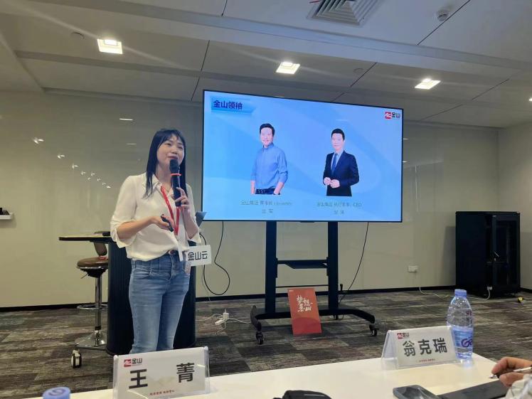 师生参访团参观金山软件集团展厅。讲解员详细介绍集团发展历程、业务布局以及企业文化,帮助来访学生全面、立体、深入地熟悉集团业务。
